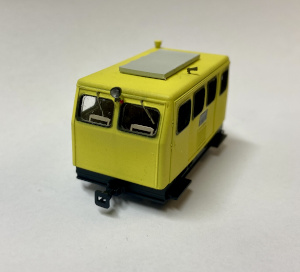 Die Gehäusebausätze passen sowohl auf das H0e-, als auch auf das HO-Fahrgestell. Sie sind unlackiert und werden auf Bestellung mit kurzen Wartezeiten gefertigt. Passgenaue CNC-gefräste Fenster liegen bei, ebenso wie Decals und Zurüstteile. Kasten mit gummigefassten Stirn- und eckigen Seitenfenstern. Bereits nach wenigen Jahren des Betriebes mussten aufgrund Undichtheiten die Stirnfenster mit Gummidichtungen gefasst werden. Mitte der 1970er-Jahre bis zur Ausmusterung: Kasten Zinkgelb RAL 1018, schwarze Fensterdichtungen Verkaufspreis H0 oder H0e: Euro 55.- inklusive 20% MwSt / Versandkosten siehe AGB |